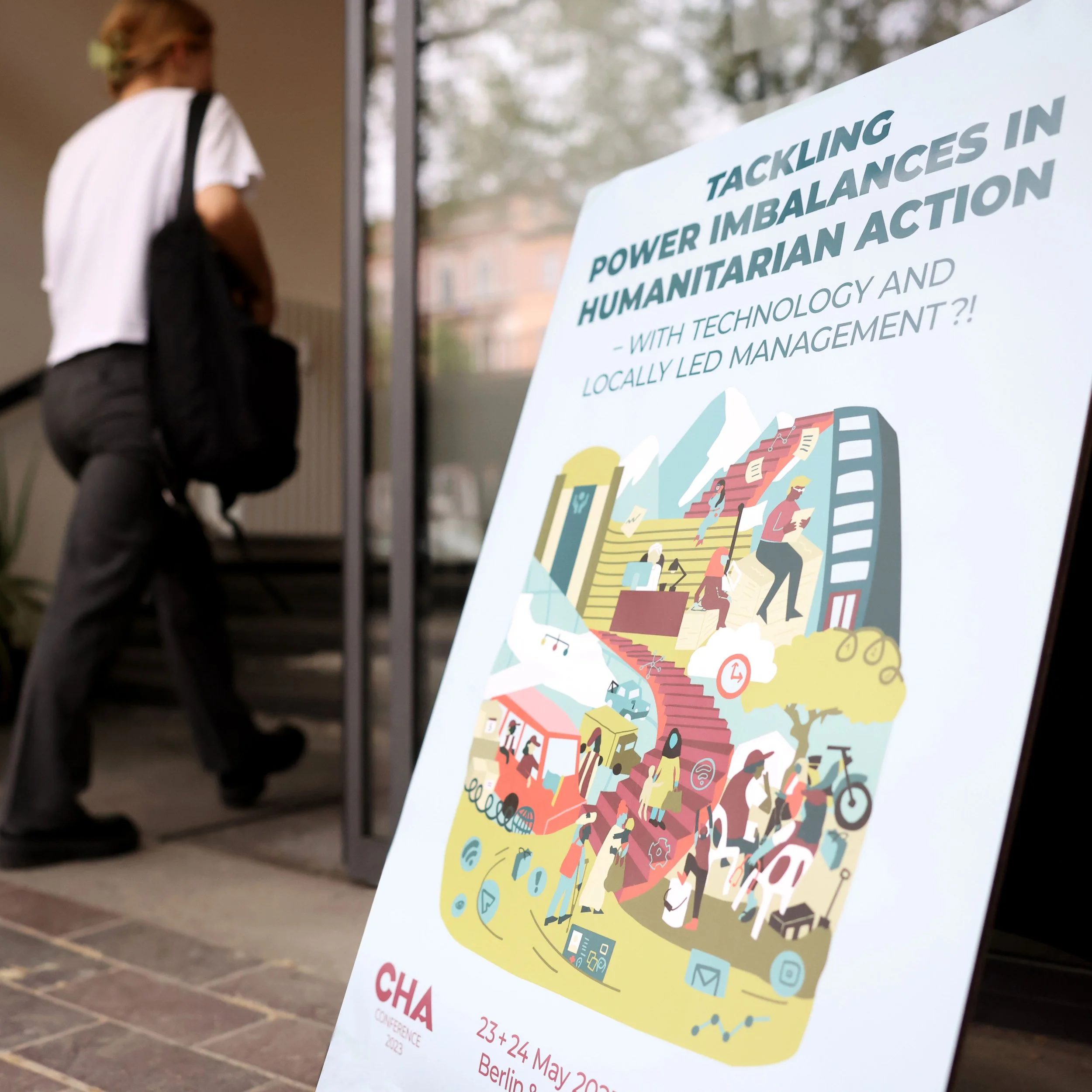 The Key Visual was commissioned for the Centre for Humanitarian Action Annual conference 2023, titled: ‘Tackling power imbalances in humanitarian action - with technology and locally led management?’. It was essential that the outcome of the key visual made ‘equitable partnership’ and ‘power imbalances’ between the individual actors in humanitarian aid quicky visible.