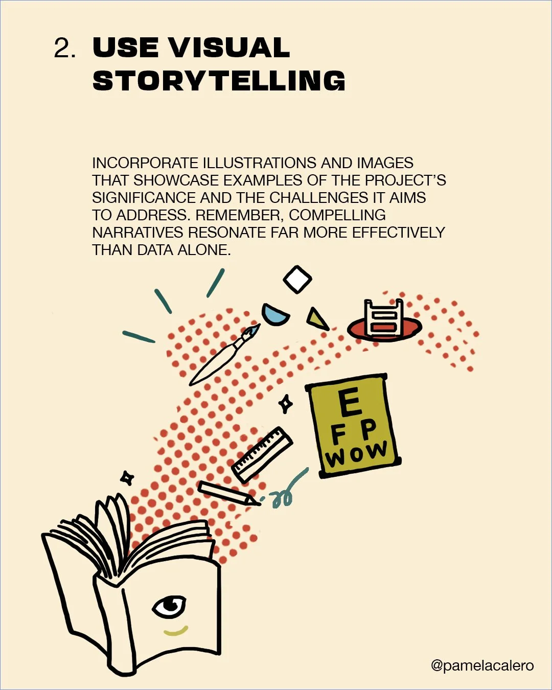 Harness the power of visual storytelling to make your key visual project relatable and memorable. Incorporate illustrations and images that showcase examples of the project's significance and the challenges it aims to address. Remember, compelling narratives resonate far more effectively than data alone.
