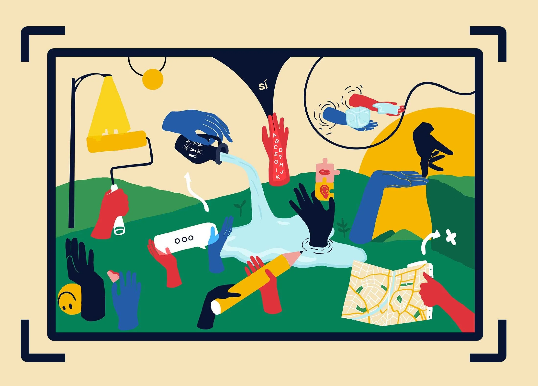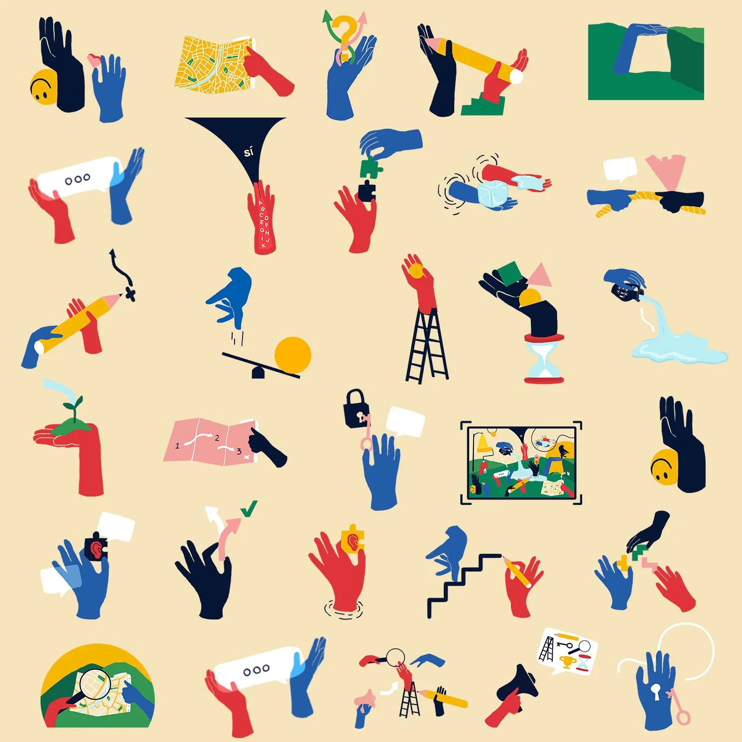 Utilizamos manos para mostrar su aspecto incluyente, diverso, y transversal.